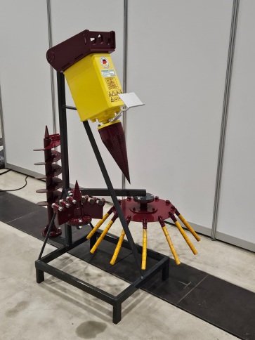 Der Kegelspalter spaltet unhandliches Gehölz, Baumstämme oder Wurzeln. Der Kegel wird durch das Gewinde in das Spaltholz gezogen und drückt den Stamm weiter auseinander. Bei dem Grundgerät erfolgt der Antrieb üver einen Hydraulikmotor.